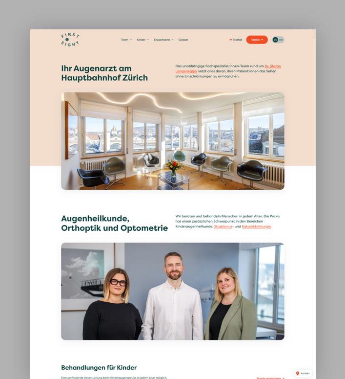 WordPress-Website zur Steigerung der Online-Präsenz und Reichweite eines Augenarztes am Hauptbahnhof Zürich